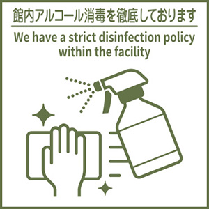 - お客さまに当施設を安心してご利用頂けるよう、ご来館時のアルコール消毒へのご協力をお願いしております。